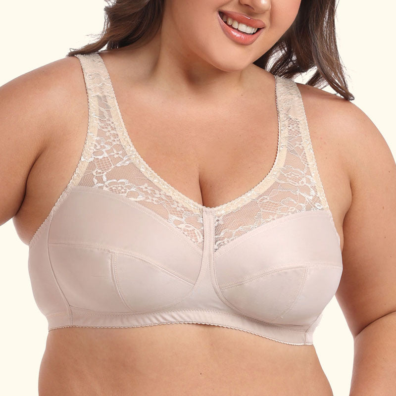 Ultra-Thin Plus-Size Bra with Lace Panel Inserts, Wide Shoulder Straps, Full Cup Wireless (C-G Cup)
